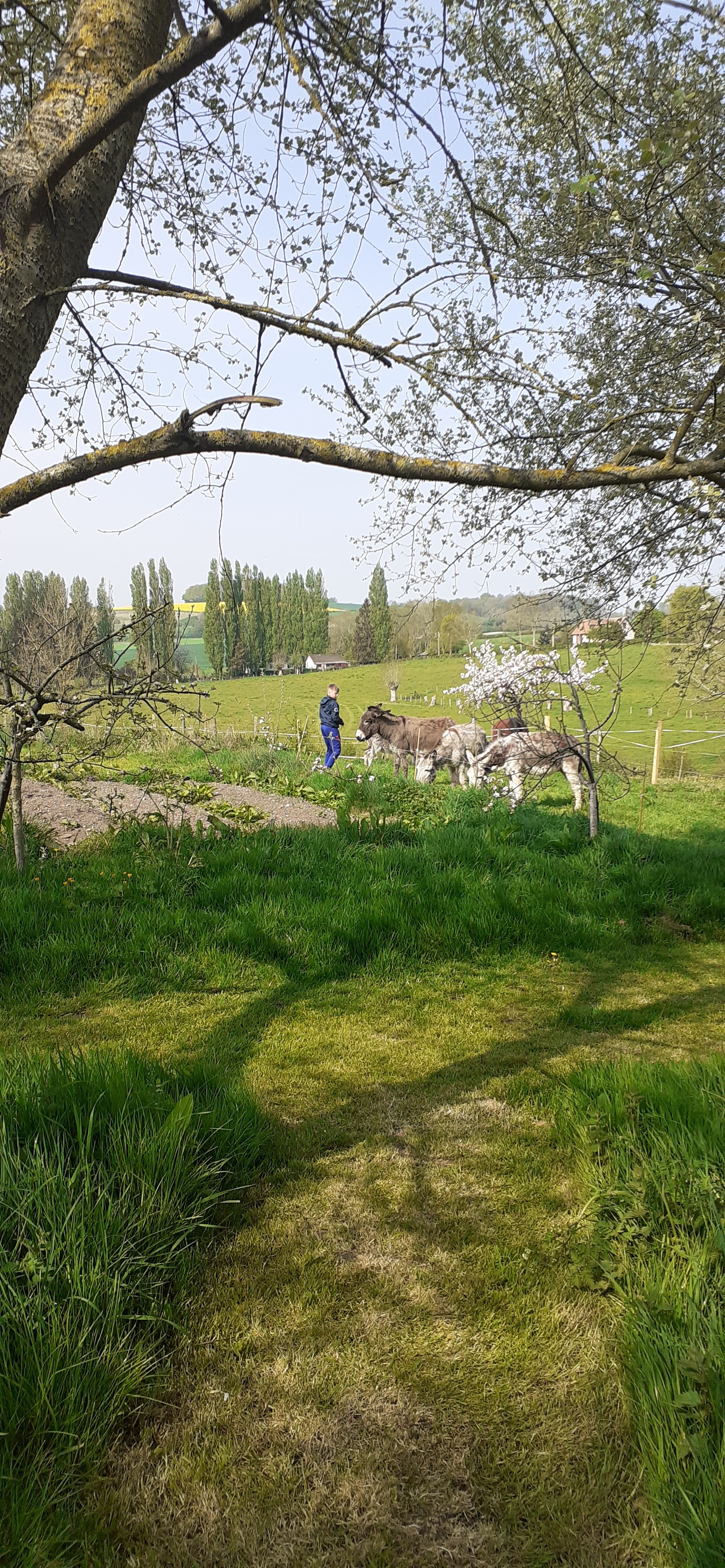 Je n avais jamais été dans un endroit comme celui ci . Ici la nature est omniprésente, plusieurs hectares s'offrent à vous .des petits sentiers pour vous guider dans ces champs d herbes hautes et d orties, un ruisseau, des potagers en permaculture, un prés pour les ânes, des ruches. Ils sont beaux, bien entretenus et n'attendent que caresses et gratouillis. Avec mes ado nous avons beaucoup aimé les brosser, ce fut une belle thérapie d amour. Nous avons séjourné quelques jours dans la cabane. Une très jolie cabane dotée de 4 lits, mezzanine ,table basse, 2 fauteuils, un canapé,un paravent pour se changer ( bien pratique), commode. Une terrasse avec une table et 4 chaises, parfaite pour des petits déjeuners au soleil. Mezzanine et lit de haut très bruyant. Lit du canapé très confortable. L aspirateur à disposition est une très bonne idée. Les toilettes, salle d'eau et cuisine commune sont à 30 mt. La cuisine est bien fournie en matériel. de grande tablée à l intérieur et à l extérieure. Et les produits de 1ere nécessité sont à disposition. Si j avais une seule remarque à faire cela serait envers les clients : merci d être plus rigoureux niveau propreté. Puisque vous faites votre vaisselle, faites la bien. Ici, pas de TV, pas de chichis, car le bonheur est dans le près. Les dames qui gèrent ce lieu sont gentilles comme tout.